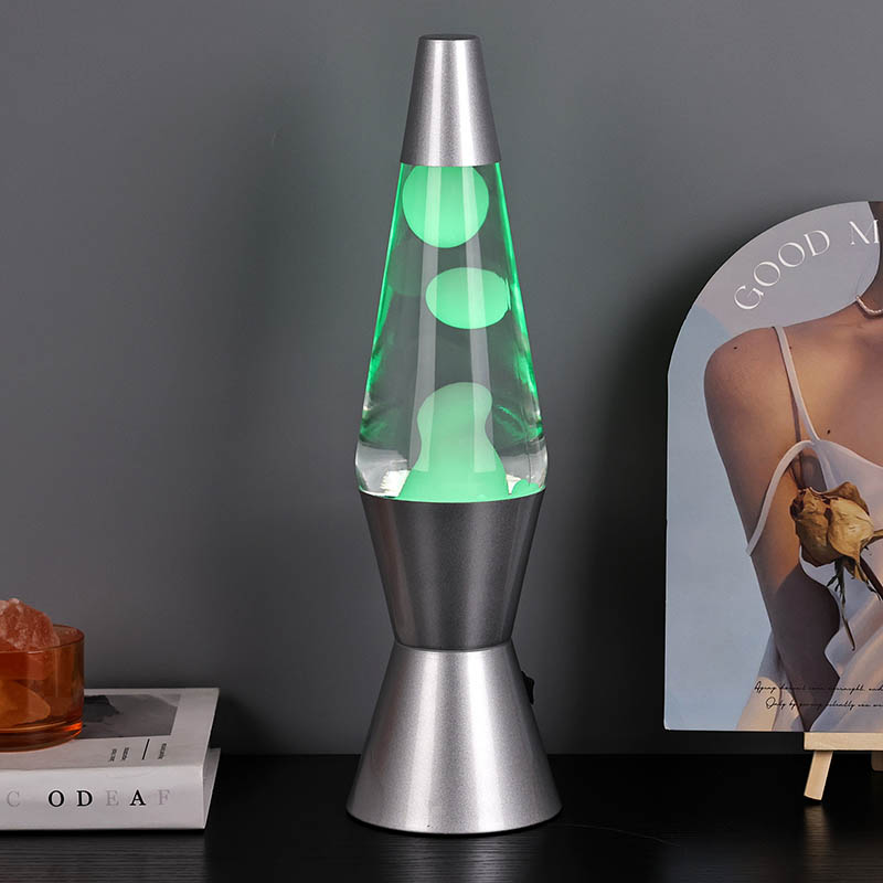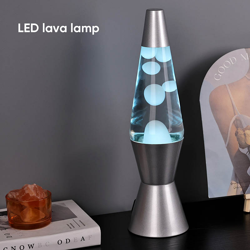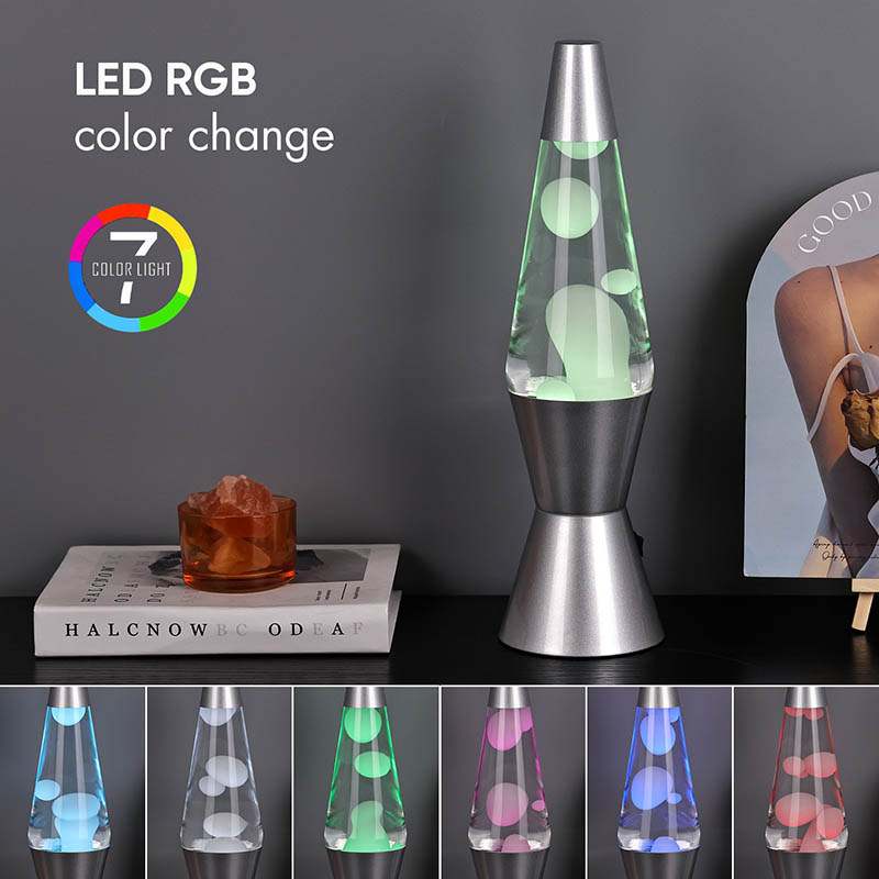 15 tuuman RGB LED-laavalampun pohjassa on 7 värin vaihtoa. väri on valkoinen laavalla.