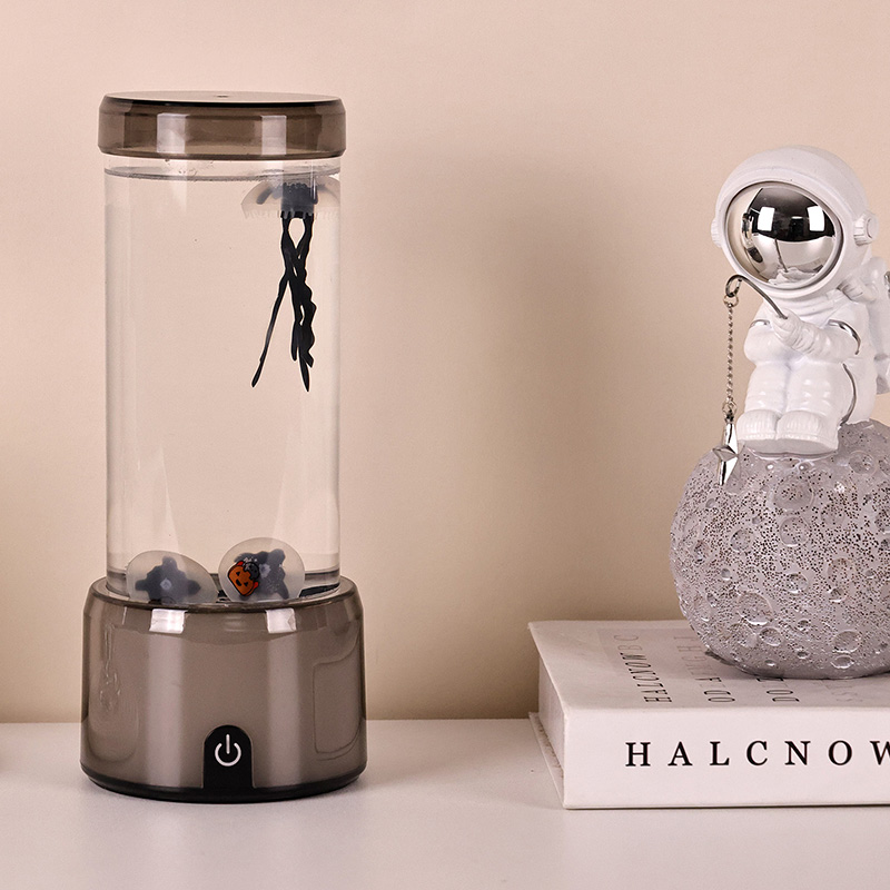 Lisää ensin vettä ja sitten 3-5 ml astianpesuainetta säiliöön, jotta meduusat liikkuvat sujuvasti. (Älä lisää liuennutta saippuaa)