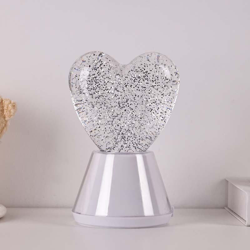Väriä vaihtava nestemäinen kimaltava yövalo sydänsävyllä. sisältää hienon lasipallon, joka on täytetty salaperäisellä nesteellä, jossa kelluvat hohtavat paljetteja. Ihmeen kaupalla väriä muuttava nestemäinen kimaltava yövalo sydänvarjolla ikään kuin tanssii taianomaisessa maailmassa.