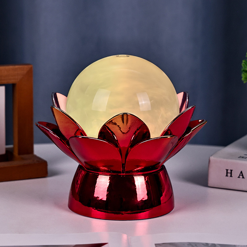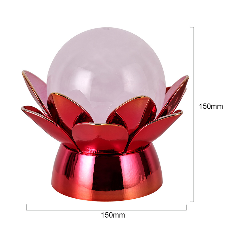 Laadukkaista materiaaleista valmistettu jalusta on valmistettu kiillotetusta metallista, jossa on silmiinpistävä punakultainen viimeistely, joka heijastaa valoa kauniisti ja lisää sen ulkonäköön syvyyttä ja rikkautta. Lootuskuvio ei toimi vain esteettisenä keskipisteenä, vaan sillä on myös symbolinen merkitys, joka on juurtunut itämaisiin perinteisiin – edustaen valaistumista, joustavuutta ja harmoniaa. Heijastava pinta parantaa visuaalista vaikutusta ja saa lampun loistamaan myös hämärässä.
