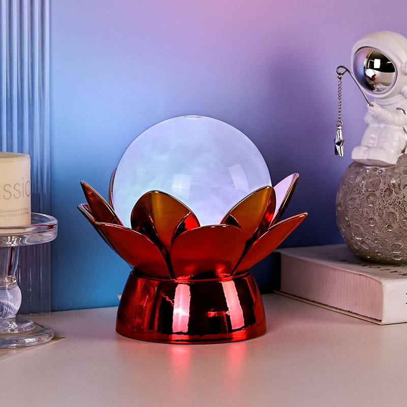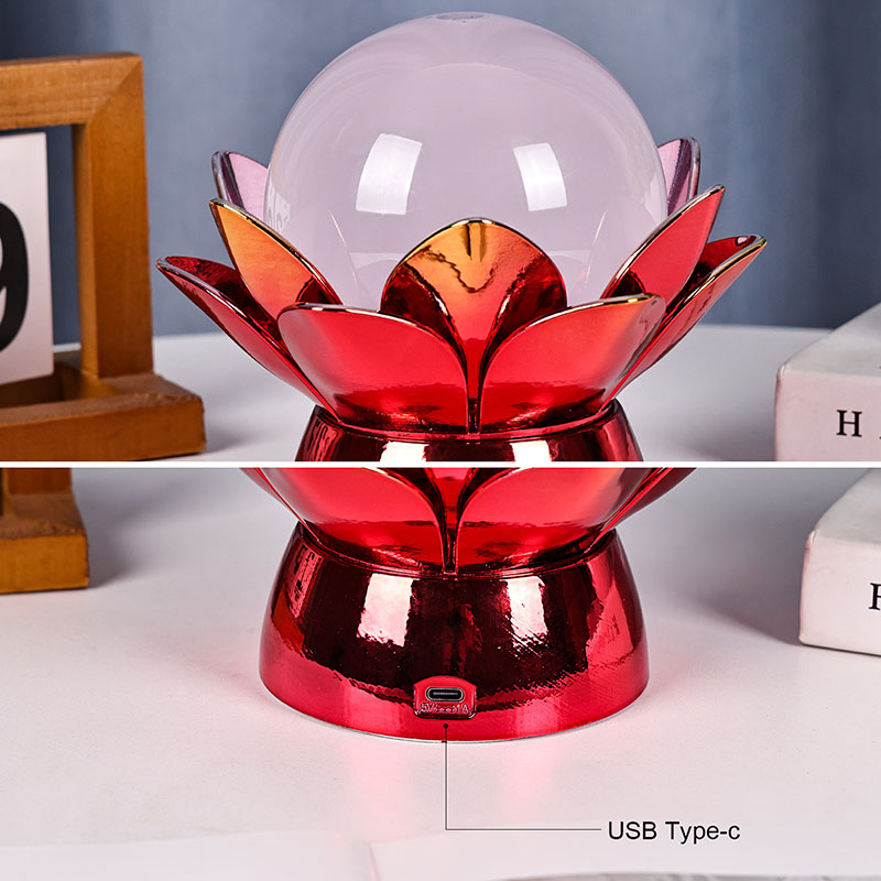 Lumoava Lotus Cloud Globe Night Light – lumoava yhdistelmä luonnon inspiroimaa muotoilua, rauhoittavaa tunnelmaa ja modernia teknologiaa. Tässä tyylikkäässä koristelampussa on läpikuultava lasipallo, joka on täytetty erityisellä nesteellä, joka simuloi ajelehtivia pilviä ja luo rauhallisen, eteerisen vaikutelman, kun se pyörii ja virtaa kevyesti. Tämä pyhän lootuksenkukan inspiroima yövalo lepää kauniisti muotoillun metallisen pohjan päällä, joka on muotoiltu kukkivien lootuksen terälehtien muotoon ja symboloi puhtautta, rauhaa ja henkistä heräämistä.
