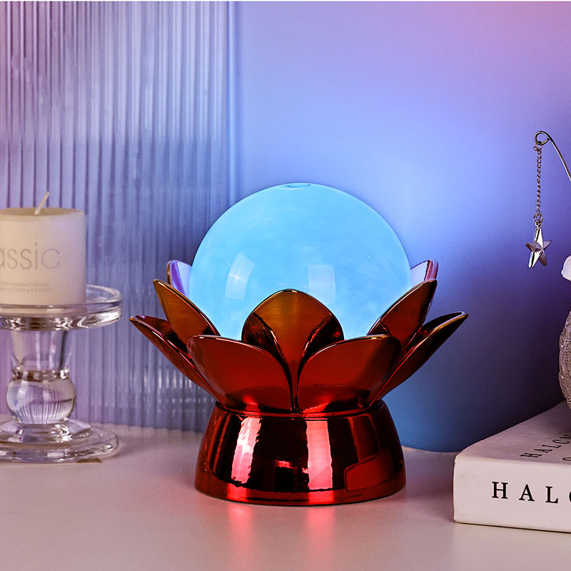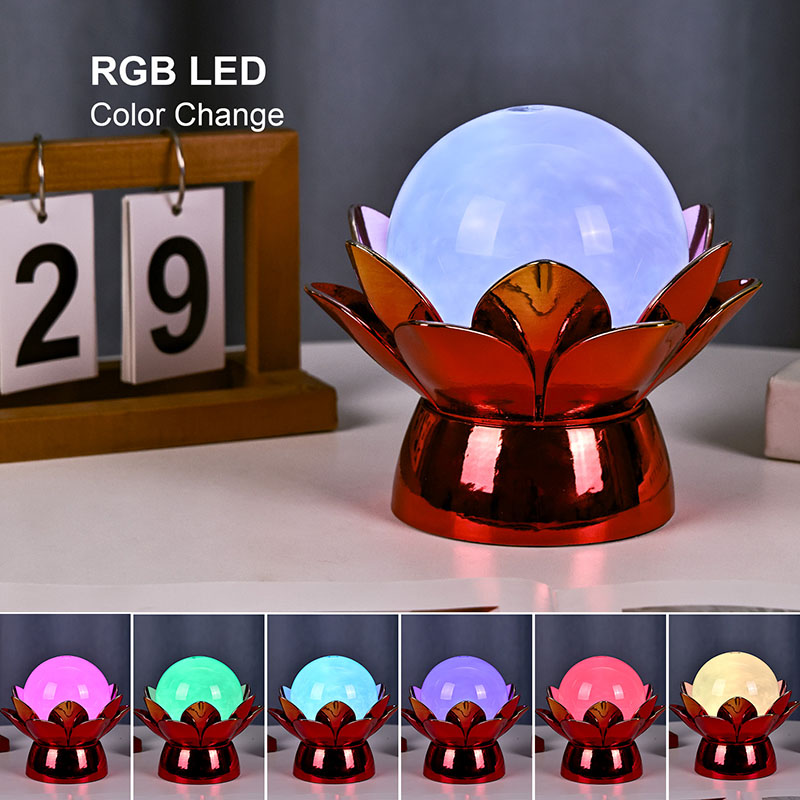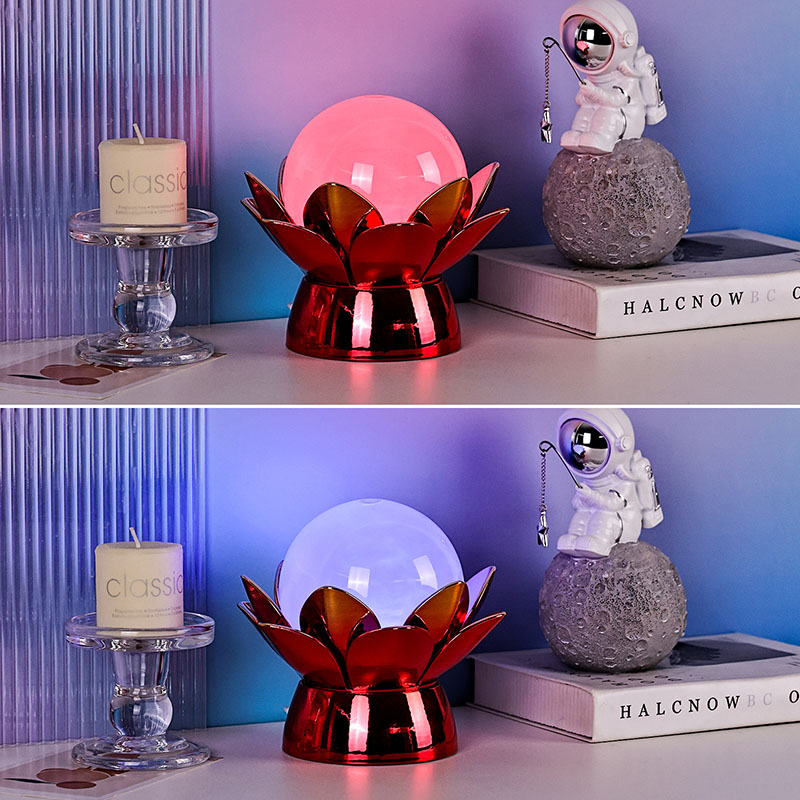 Maapallon sisällä edistynyt LED-valaistus tarjoaa monivärisen valaistuksen, jonka avulla käyttäjät voivat muokata tunnelmaa pehmeillä sävyillä, kuten lämpimällä valkoisella, lempeällä vaaleanpunaisella, rauhoittavalla sinisellä ja kullankeltaisella. Värinvaihtoominaisuutta voidaan ohjata manuaalisesti tai asettaa pyörimään automaattisesti, mikä tarjoaa dynaamisen ja kiehtovan näytön, joka kehittyy ajan myötä. Tämä ympäristövalaistus sopii erinomaisesti makuuhuoneisiin, olohuoneisiin, joogatiloihin tai harkittavaksi lahjaksi rakkaille, jotka arvostavat kauneutta ja rauhallisuutta.