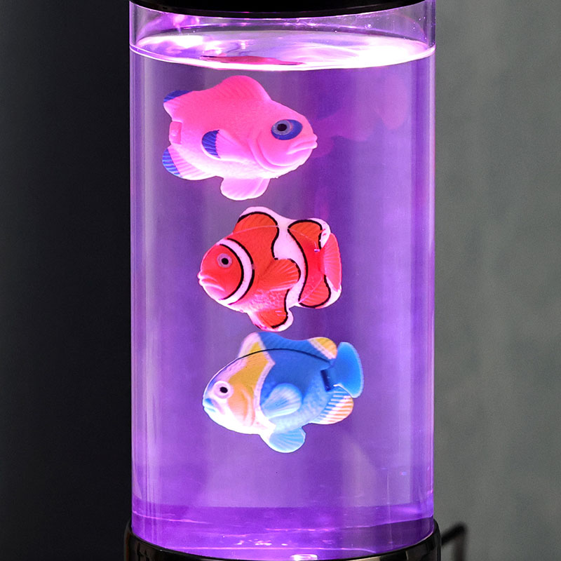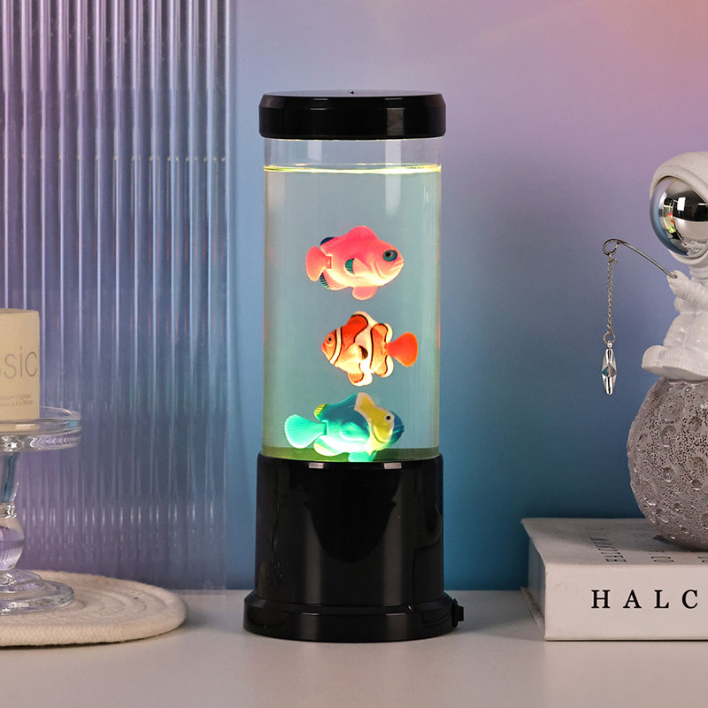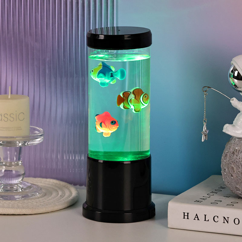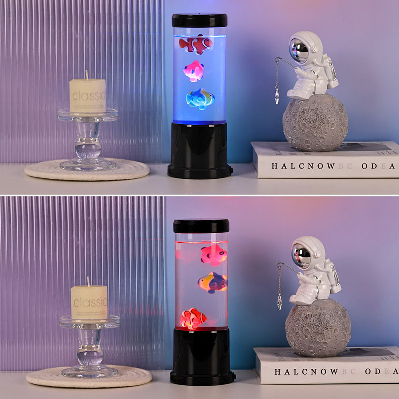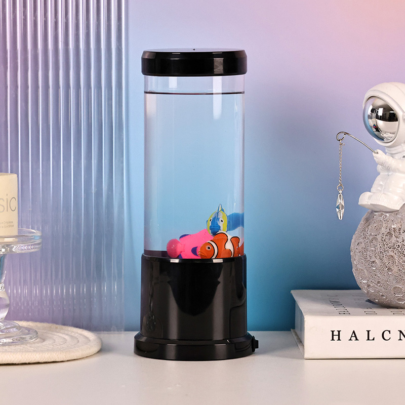 Läpinäkyvän säiliön sisällä elävät keinotekoiset kalat liukuvat sulavasti ylös ja alas synkronoituna pohjasta nousevien pehmeiden kuplavirtojen kanssa. Nämä kauniin yksityiskohtaiset kalat, jotka on suunniteltu eloisilla väreillä ja realistisilla tekstuureilla, näyttävät uivan luonnollisesti sisäänrakennetun ilmapumpun luoman pehmeän virran kuljettaessa niitä. Liike on rauhoittava ja hypnoottinen luoden rauhoittavan visuaalisen kokemuksen, joka auttaa vähentämään stressiä ja edistämään rentoutumista.