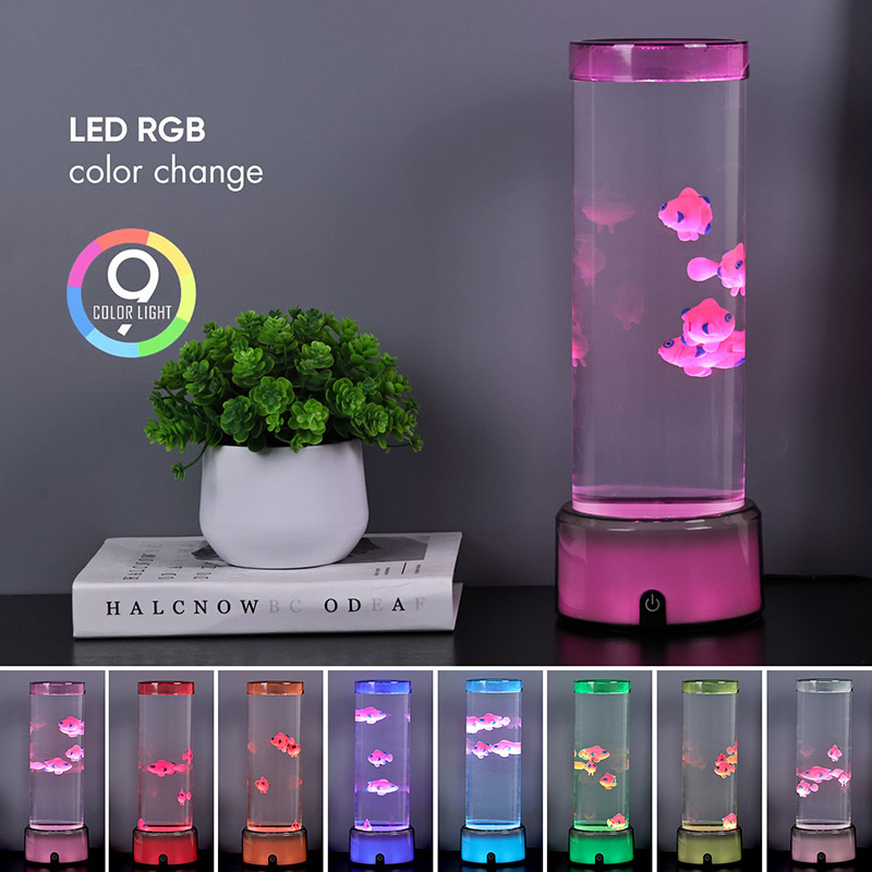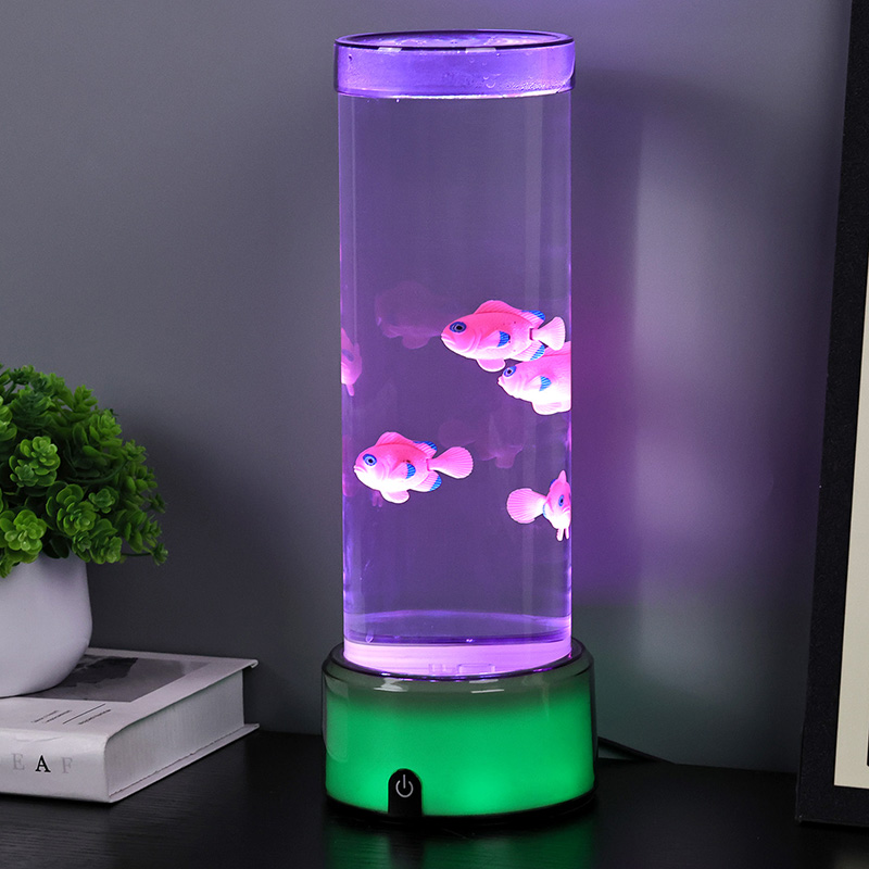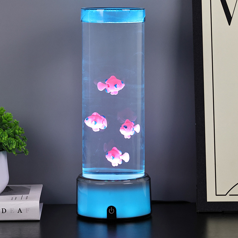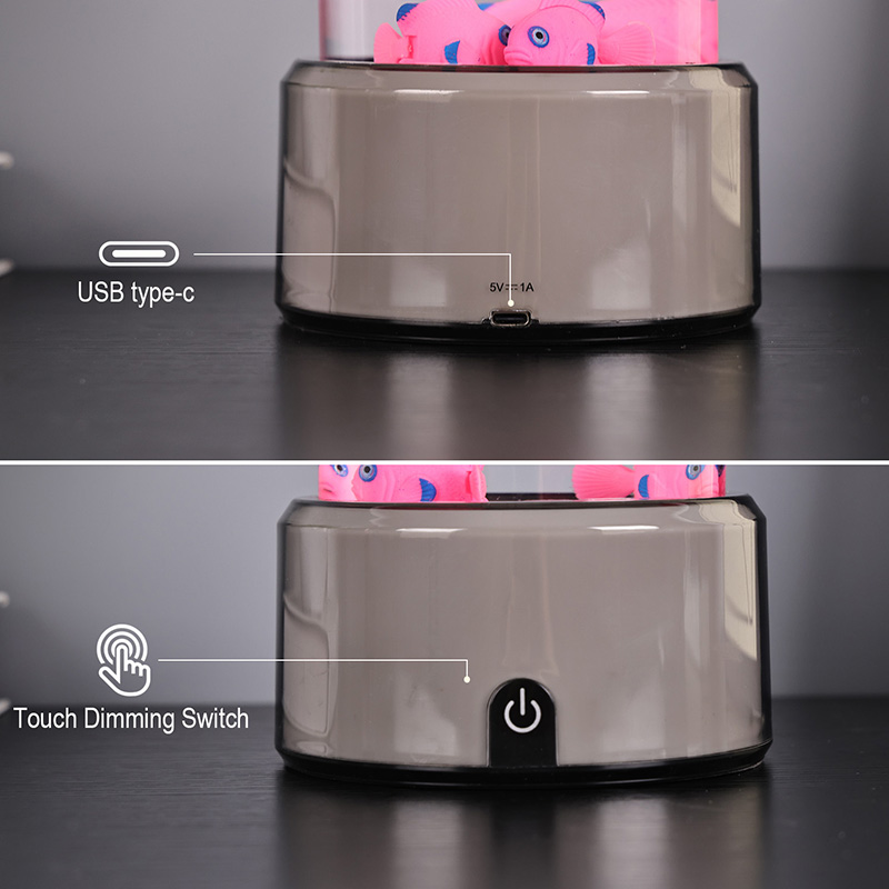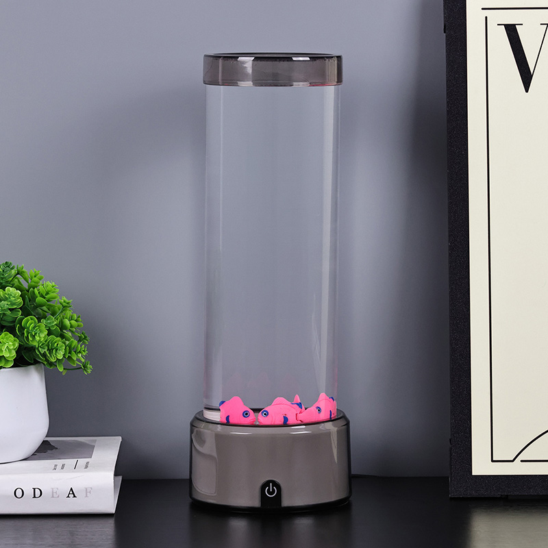 Kosketusvalintakytkin ja meduusan uintiMeduusa-kalalamppu RGB-pohjaisella koristelampulla, äskettäin suunniteltu lasten katselulelu, jossa on lieriömäinen vettä pidättävä muotoilu. Veden täyttämisen jälkeen kolme pientä kalaa asetetaan sisään. RGB-pohjalla varustettu Jellyfish Fish Lamp voi uida ylös ja alas, kun pieni moottori pyörii pohjassa. Samalla pohjassa on RGB-värimuunnos. Tämän tuotteen suurin kohokohta on, että myös pohja muuttuu värinmuutoksen myötä. Koko muovirakenne on erittäin kevyt ilman vedenpidätystä, mikä on erittäin kätevä kuljetuksessa. Kalalampun virtalähde on USB-tyypin C matalajännite, mikä on erittäin kätevää