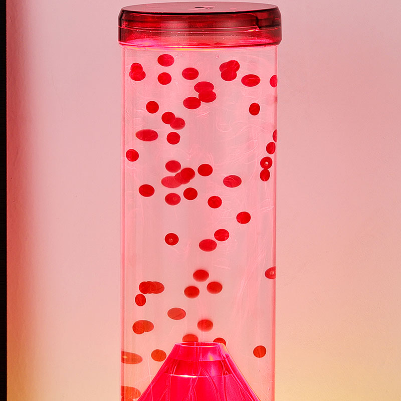 dynamiikka, jossa punaiset kuplat nousevat ja laskevat jatkuvasti, jäljittelevät sulan laavan luonnollista virtausta tai meduusojen lempeää ajautumista merivirtojen läpi. Tämä hypnoottinen vaikutus rauhoittaa