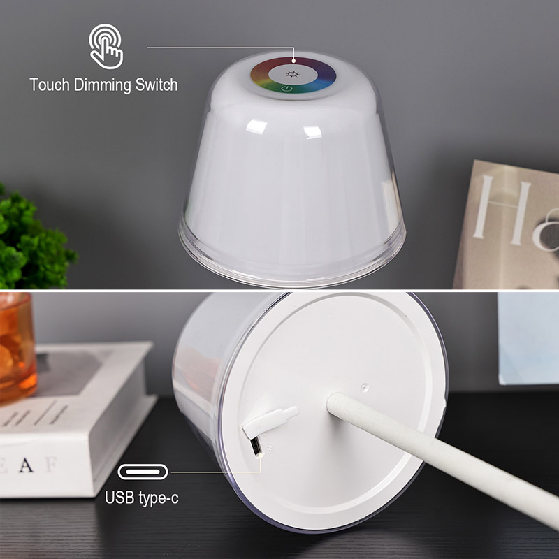 Pöytävalaisimen valo voidaan muuntaa automaattisesti RGB:stä eri väreiksi tai säätää manuaalisesti eri väreiksi. Tietysti, jos sitä käytetään valaisimena, siellä on myös lämmin valo, jossa on ääretön himmennys, jota voidaan käyttää lukemiseen. Pöytävalaisimella on laajempi valikoima käyttöympäristöjä, koska sen mukana tulee akku, joten lampun pää voidaan irrottaa ja kuljettaa mukana tai laittaa viinipulloon koristeeksi. Tietenkin, kun pöytävalaisin on koottu, sitä voidaan käyttää lukuvalaisimena