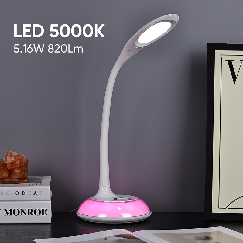 Lisäksi moderni LED -työpöytävalaisin, jossa on RGB -pohja Tämä tarkoittaa, että kun vaihdat modernin LED -pöytävalaisimen, jossa RGB -pohja on taas päällä, se palaa automaattisesti haluamasi väriisi tai valkoiseen valotilaan, mikä säästää vaivaa säätää sitä joka kerta.