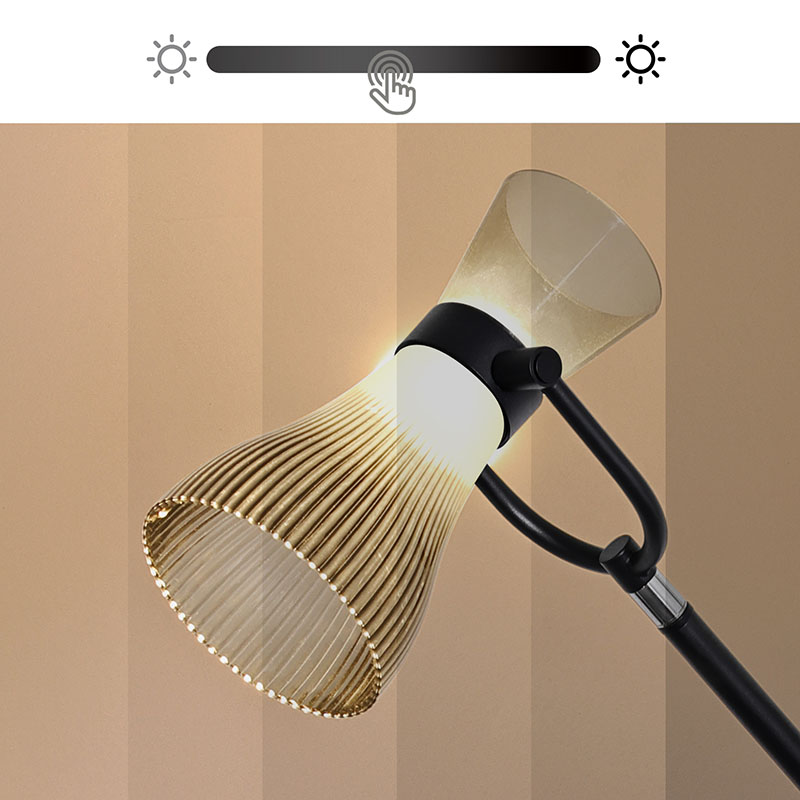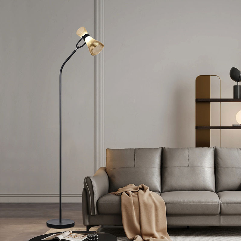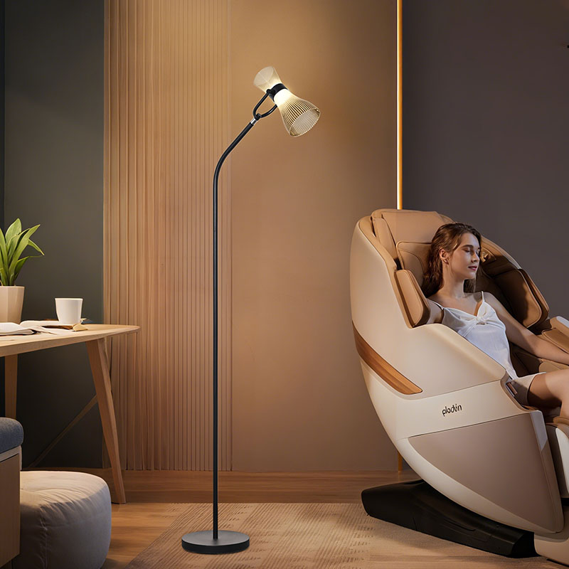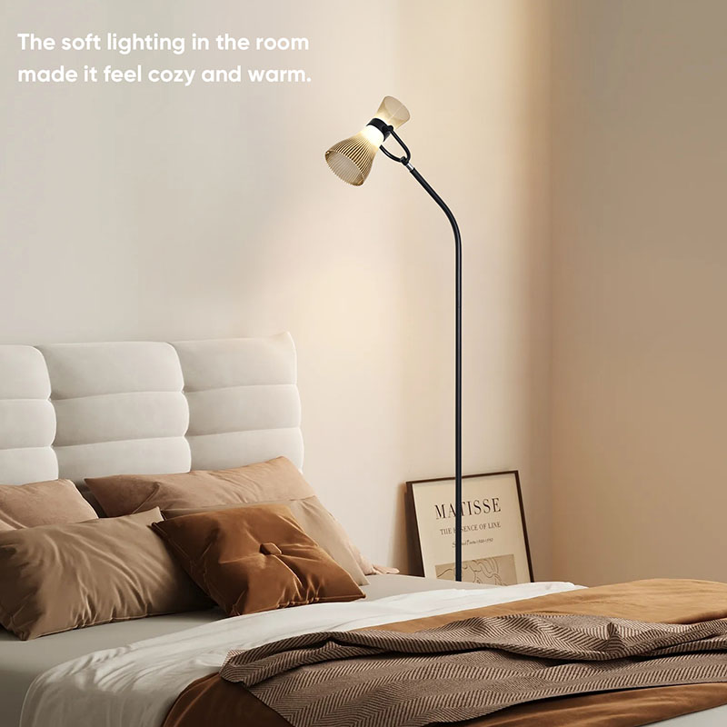 sileät ja luonnolliset linjat, jotka esittelevät jaloa ja eleganttia tunnelmaa. Lasivarjostin ei ainoastaan anna lampulle läpinäkyvää ja puhdasta rakennetta, vaan myös hajottaa valoa tehokkaasti tehden valosta pehmeämmän ja tasaisemman. Sijoitettiinpa sitten olohuoneeseen, makuuhuoneeseen tai työhuoneeseen, moderni led-lattiavalaisin lasivarjostimella sopii täydellisesti