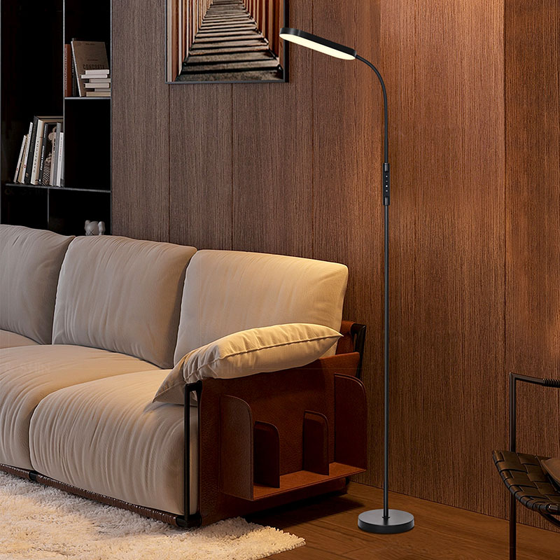 Moderni led-seisomavalaisin olohuoneeseen omaksuu minimalistisen muotoilukonseptin yksinkertaisella ja lineaarisella yleismuodolla. Yksinapainen muotoilu ei ainoastaan säästä tilaa, vaan antaa myös valaisimille ainutlaatuisen esteettisyyden. Musta metallitanko ja pohja on hienoksi kiillotettu ja käsitelty, ja niissä on sileä ja herkkä pinta, pehmeä kiilto ja hillitty mutta jalo tunnelma.