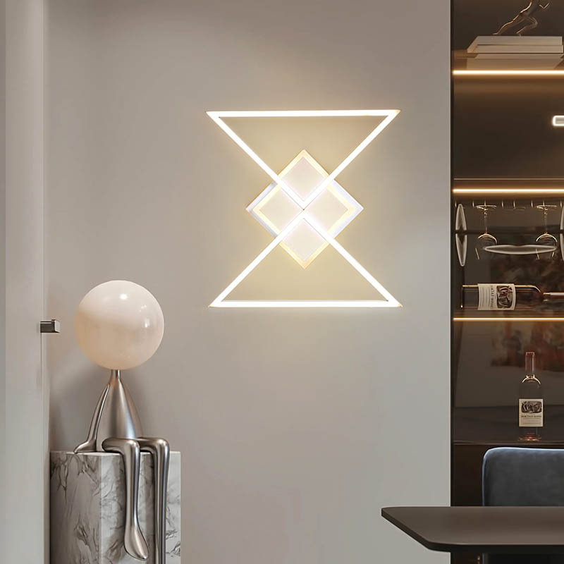 Tekniset tiedot: Materiaali: Laadukas metalli Suunnittelu: Moderni, geometrinen diagonaalikolmio Valaistus: