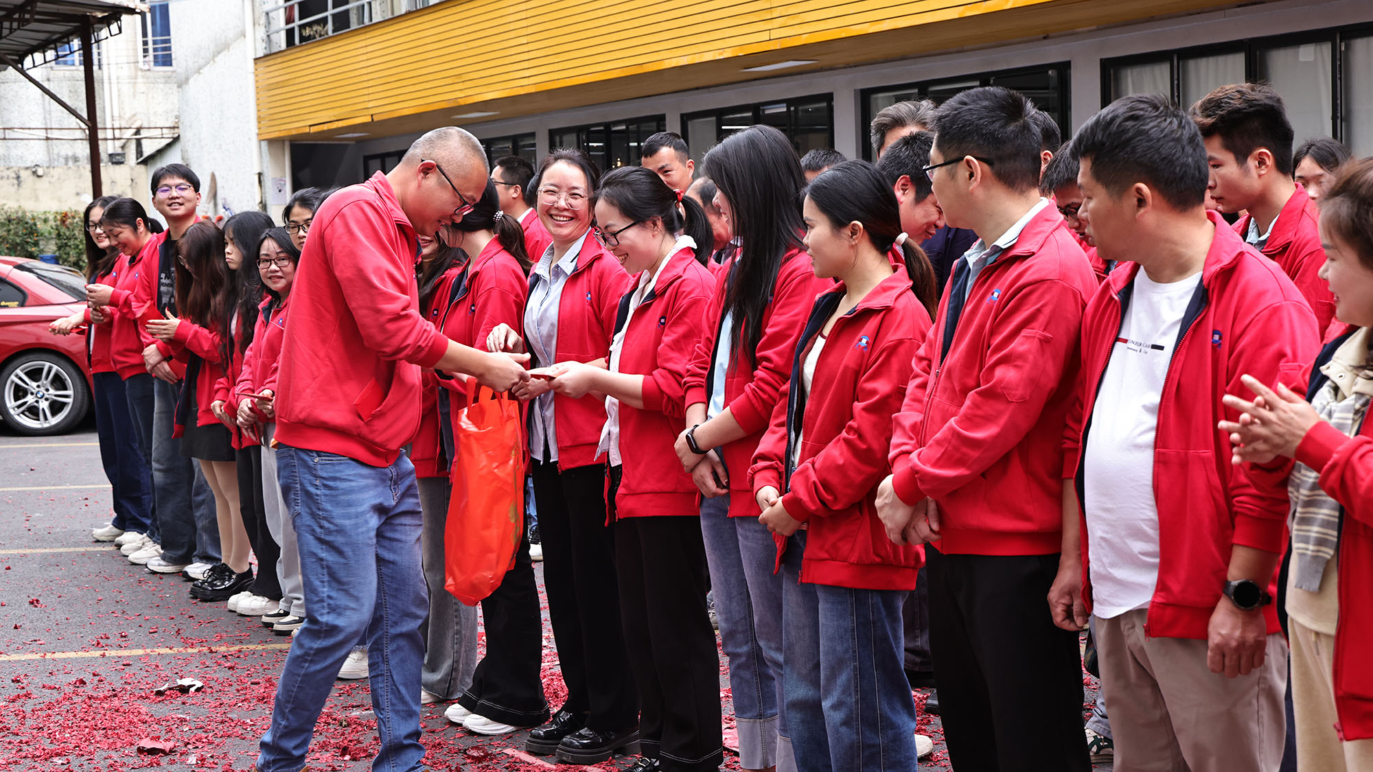 Myöhemmin "Kick-off Red Packets" -jakelun jännittävä segmentti työnsi paikan päällä ilmapiirin huipentumaansa. Yrityksen johto jakoi henkilökohtaisesti suotuisat punaiset kirjekuoret (Li Shi) jokaiselle työntekijälle. Nämä raskaat punaiset paketit kantoivat paitsi yrityksen huolen ja siunauksen henkilökunnalle, myös kauniita toiveita kaikkien sujuvasta työstä ja onnellisesta elämästä uudelle vuodelle. Punaisia paketteja vastaanottaneet työntekijät hymyilivät onnellisin mielin ja vaihtoivat terveisiä "A Prosperous Start". Nauru ja ilo täyttivät ilman, yhdistäen uudenvuoden vahvan maun inhimilliseen lämpöön, lämmittäen kaikkien sydäntä.