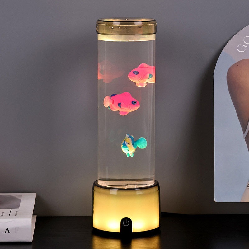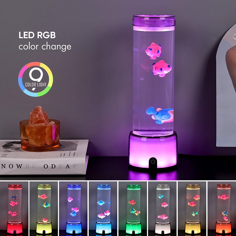 Kalalampun jalusta on varustettu RGB-väriä vaihtavalla läpinäkyvällä pohjalla, joka voi säteillä useita värejä valoa, jolloin koko lampun runko on värikäs. Väri kytkimen päälle kytkemisen jälkeen