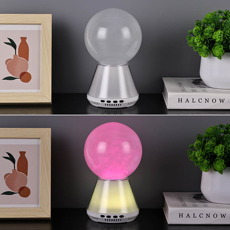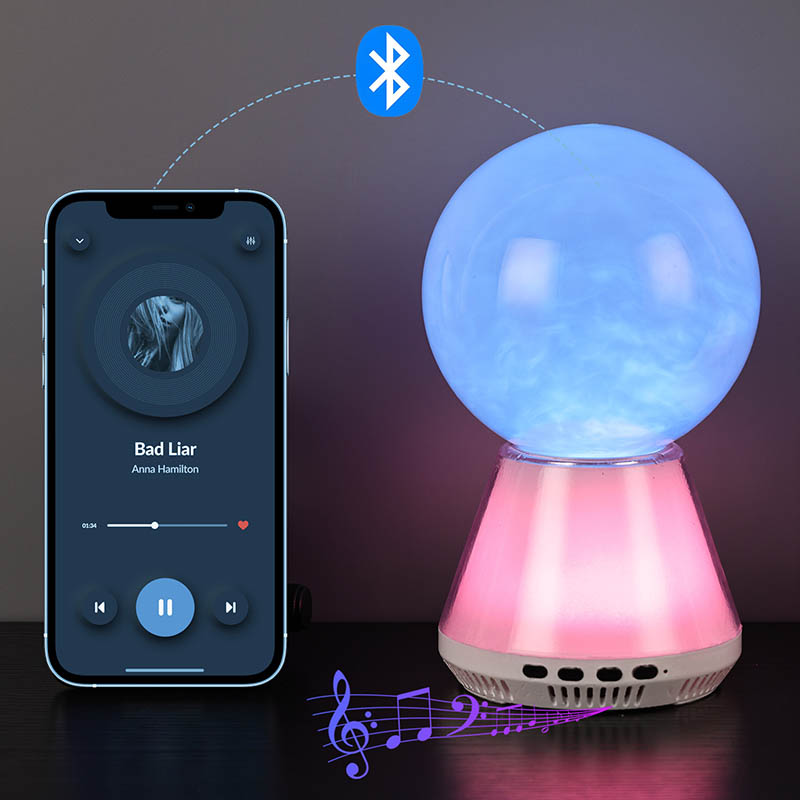 Bluetooth-ohjauksella varustetun RGB LED -kimallelampun ydin on sen ainutlaatuinen lasipallomuotoilu. Lasipallon sisäpuoli on täynnä salaperäistä nestettä. Kun lamppu sytytetään, neste virtaa hitaasti pallon sisällä muodostaen unenomaisen pilviefektin. Nämä pilvet ja sumu näyttävät putoavan taivaalta,