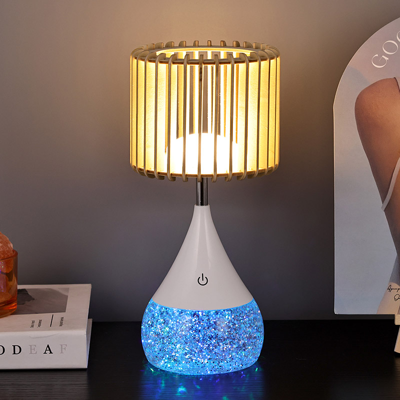 Esittelyssä uuden designin LED-pöytävalaisin, täydellinen sekoitus modernia muotoilua ja edistynyttä valaistustekniikkaa, joka muuttaa asuintilasi mukavuuden ja tyylin paratiisi. Tässä innovatiivisessa pöytävalaisimessa yhdistyvät korkealaatuiset muovimateriaalit ainutlaatuiseen puiseen sälevarjostimeen, RGB-väriä vaihtavaan pohjaan ja säädettävään lämpimän valon voimakkuuteen, joten se on ihanteellinen lisä jokaiseen kotiin tai toimistoon.