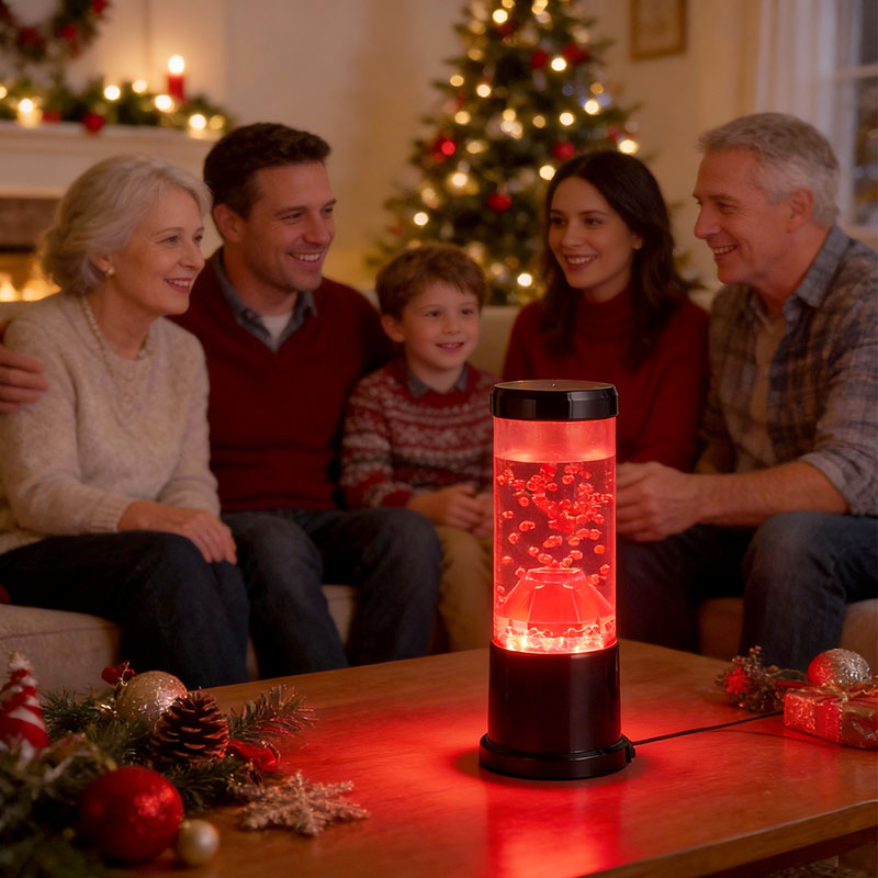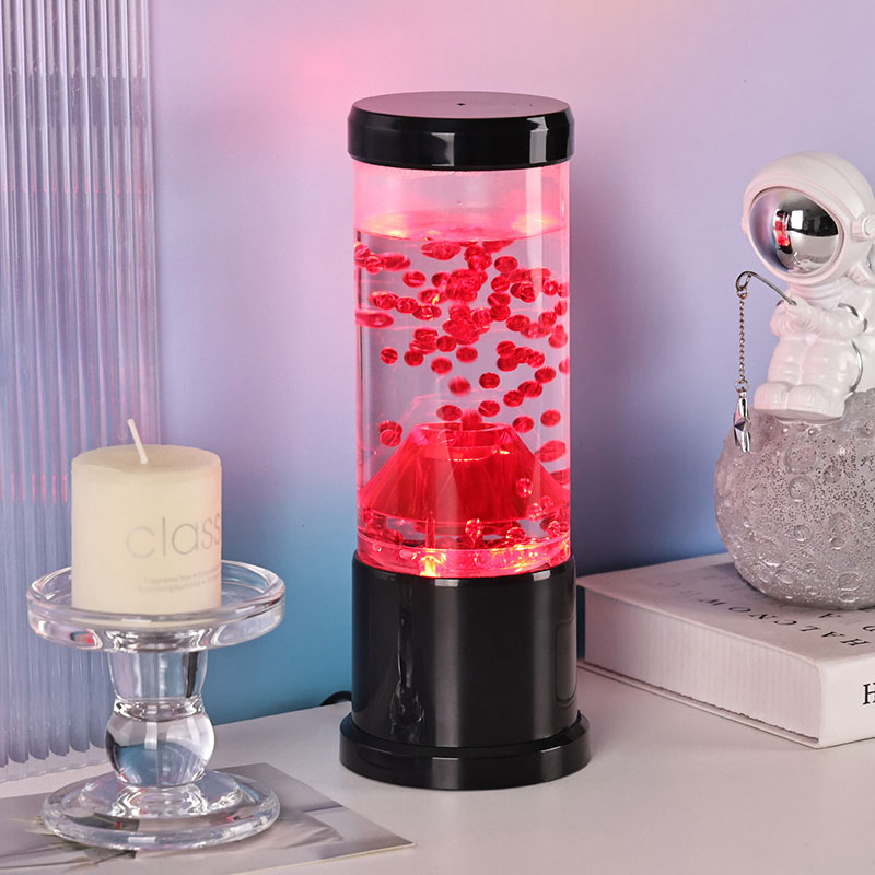 Yövalon keskiosa on läpinäkyvä pylväs, joka muistuttaa tulivuoren kraatteria. Tämän sarakkeen sisällä on eloisa näytelmä punaisista palloista, jotka muistuttavat maankuoren sisällä virtaavaa sulaa laavaa. Nämä pallot kelluvat sulavasti kirkkaassa nesteessä luoden dynaamisen ja jatkuvasti muuttuvan visuaalisen vaikutelman. Kun valo loistaa läpi, se luo lämpimän ja kutsuvan hehkun, joka on täydellinen luomaan kodikkaan tunnelman mihin tahansa huoneeseen.